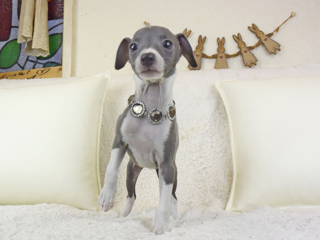 | お父さん犬がアメリカチャンピオンという非常に珍しい良血統のイタグレちゃんのご紹介です。 アメリカチャンピオン直子ということで、このワンちゃんはイタグレの理想的な体つきと、性格の良さを掛け合わせているワンちゃんです。 イタリングレーハウンド略してイタグレの愛称で日本でも徐々に人気が出てきたワンちゃんで、体つきはシュッとしていてスタイリッシュボディ!! 冬にはお洋服を着せてあげるとさらにおしゃれなワンちゃんになりますよ♪ イタグレをお探しの方であれば必ず納得いただけるワンちゃんですので、是非一度ご見学にお越し下さい。 お父さん犬 ![]() | |
